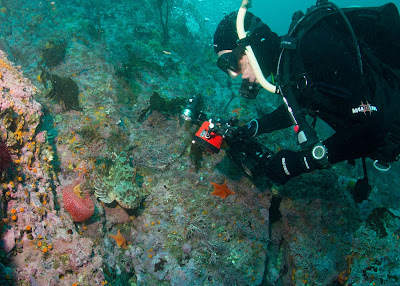 Yesterday I made a solo dive at Otter Cove in Pacific Grove to catch a brief calm period before the arrival of yet another winter storm that evening. It was quite calm and I had 25 -35 ft of visibility and 52 degree water temperature, mostly scattered clouds with brief bits of sun.