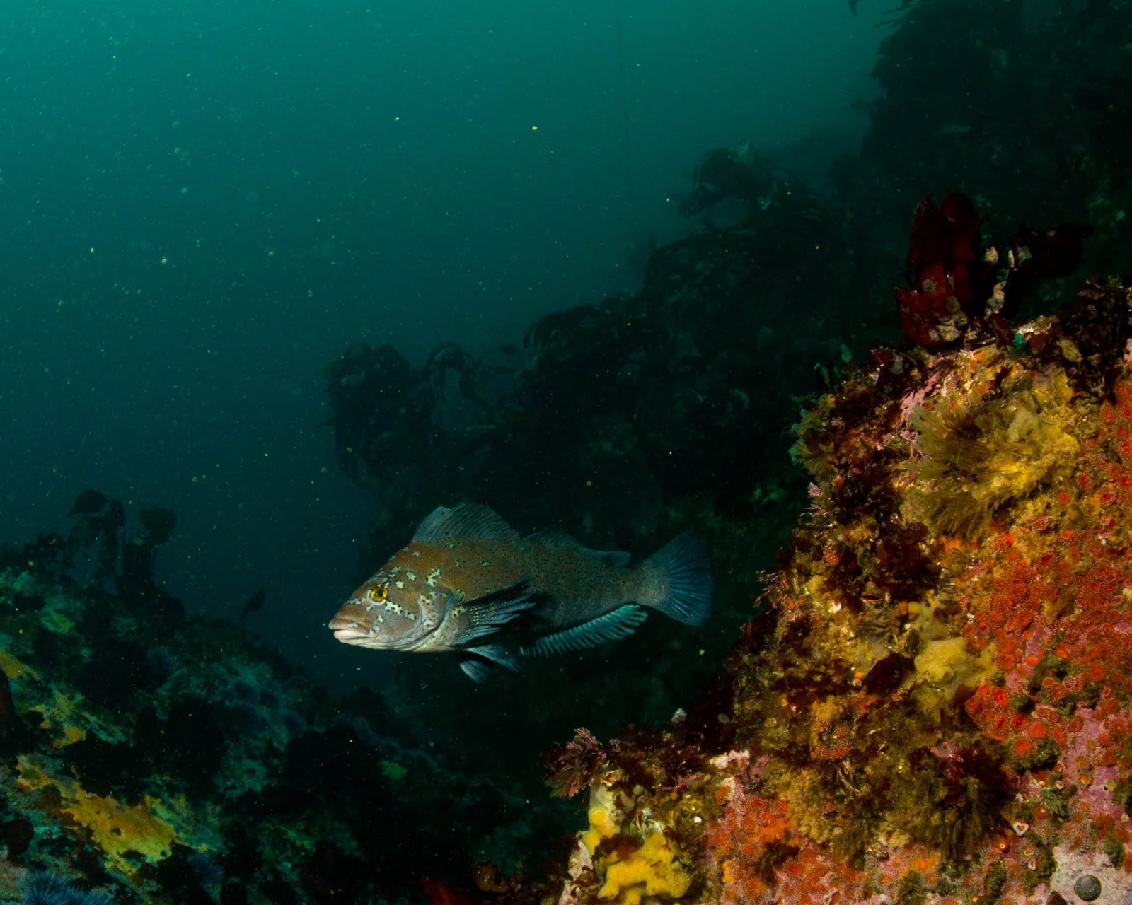 Male Kelp Greenling, I saw a couple fighting over territory yesterday so they will be competing for females and guarding the eggs soon.
