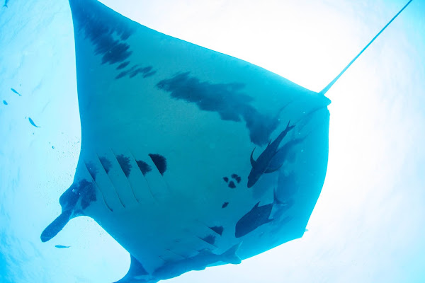 Above: Another Giant Manta visit in bright sunlight as we surface from our safety stop.